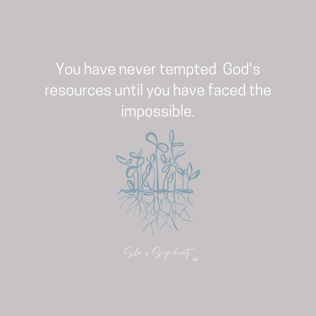 Nothing is too hard for God. All we have to do is look around us at His creation and the beautiful symphony all life plays as it is orchestrated by God. You have never tempted God’s resources until you have faced the impossible.
